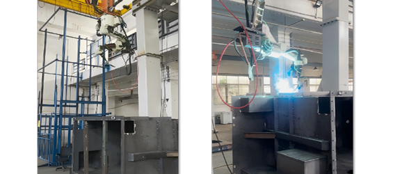 系统自动规划路径与焊枪姿态,视觉自动纠偏,超准视觉独有视觉实时扫描焊接,自动识别三角区焊缝并调用对应工艺回旋焊接技术,软件端实时焊接数据、焊接进度可查。