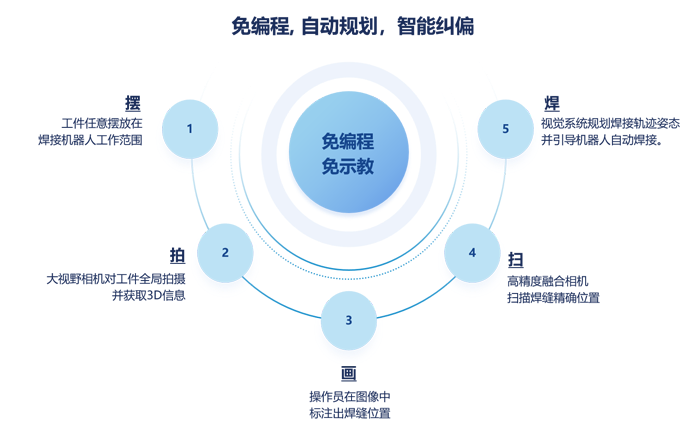 除焊缝类型,焊缝位置外,提供焊缝特征空间数据及快速手眼标定模块